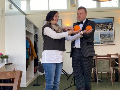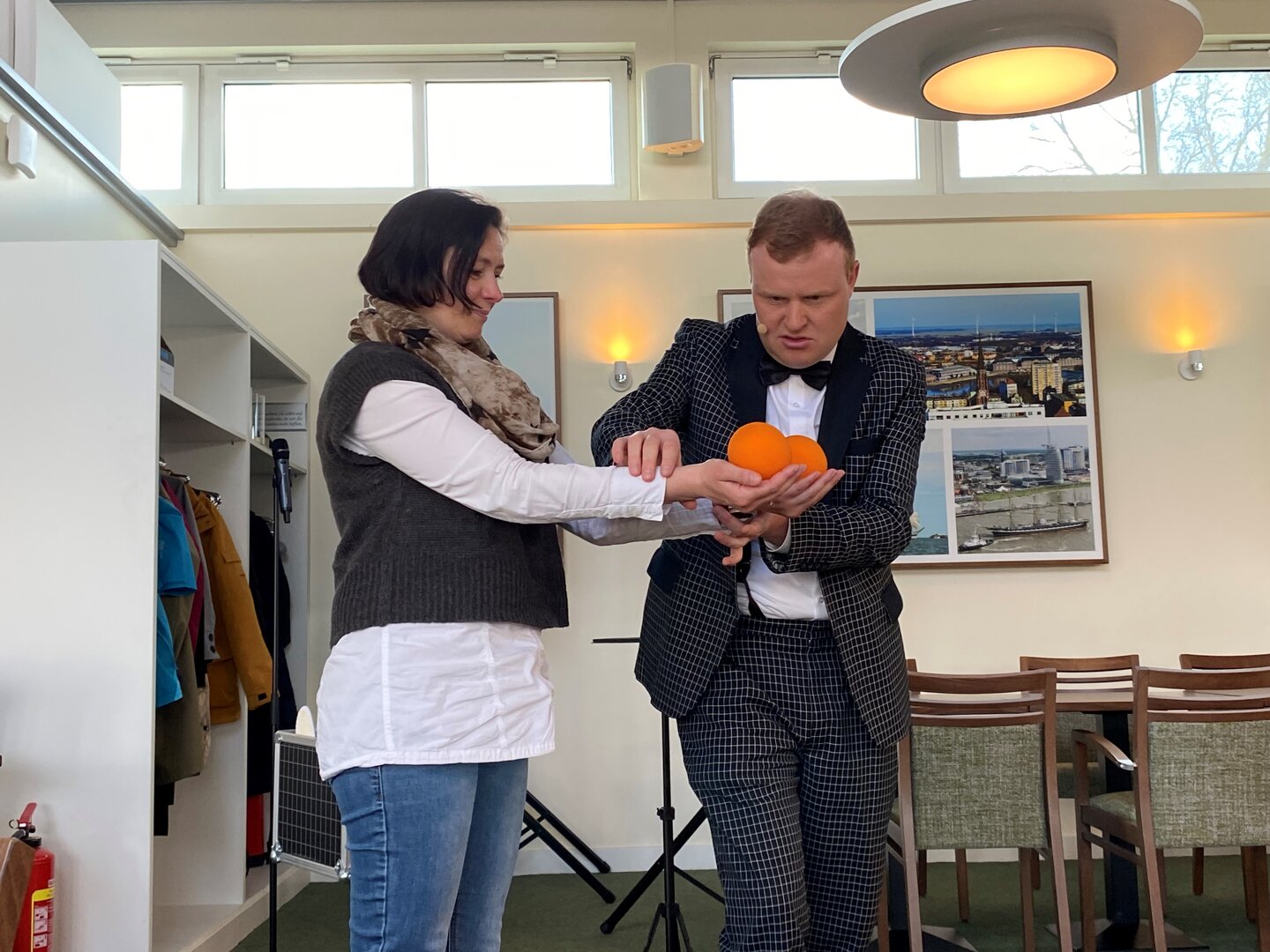Nach dem festlichen Essen servierte Zauberkünstler Tim Jantzen einen magischen Nachtisch: Mit seinen verblüffenden Tricks, in die er immer wieder das Publikum mit einbezog, sorgte es für beste Unterhaltung mit einer Extra-Portion guter Laune.