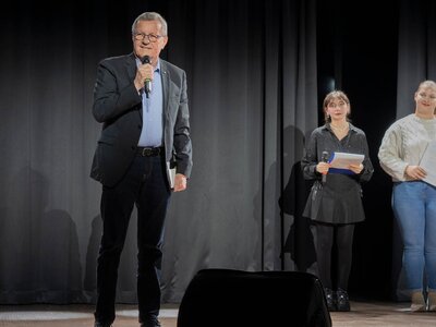 Zwischen den einzelnen Darbietungen kamen auch Erwachsene kurz zu Wort: „Wir sind sehr stolz auf Euch“, sagte AWO-Kreisverbandsvorsitzender Dr. Uwe Lissau, „weil Ihr das schafft, was wir Erwachsenen oft nicht hinbekommen: Nämlich trotz schwieriger Lebensgeschichten sowie unterschiedlicher Herkunft, Sprache und Religion respektvoll miteinander zu leben und tolle Sachen auf die Beine zu stellen.“ Zu den Gästen gehörte auch Wilhelm Schmidt, Ehrenvorsitzender des AWO Bundesverbandes: „Ich habe sehr großen Respekt vor Eurer Arbeit und Eurem Engagement.“ Für den Bremerhavener Magistrat gratulierte Sozial- und Jugend-Stadtrat Martin Günthner: „Ein herzliches Dankeschön für eure gute und wertvolle Arbeit – sie ist sehr wichtig für die soziale Stabilität für die Kinder und Jugendlichen in Bremerhaven.“ Und die Geschäftsführer*innen des AWO Kreisverbandes Eckart Kroon und Silke Rupietta überreichten einen Scheck über 1.000 Euro.